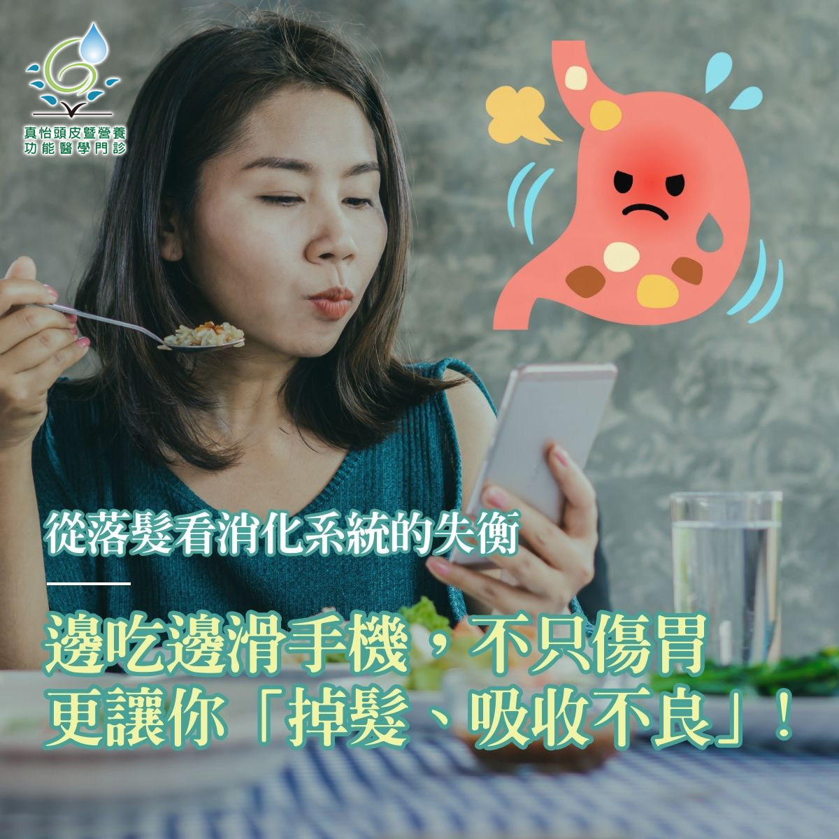 從落髮看消化系統的失衡-邊吃邊滑手機,不只傷胃,更讓你掉髮、吸收不良!